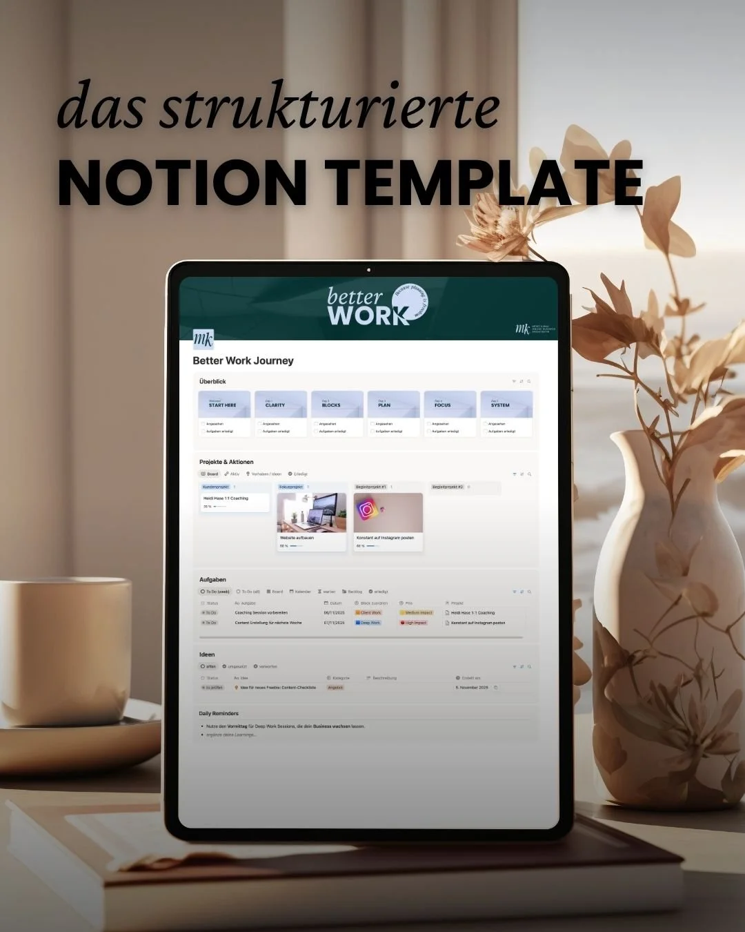 Better Work ist die richtige Journey für dich wenn du weißt, dass ein Tool alleine nicht für Klarheit sorgst und du bereit bist, auch an deiner Arbeitsweise und deinen täglichen Routinen zu arbeiten.